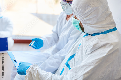 Ärzte in Schutzkleidung arbeiten zusammen bei Covid-19