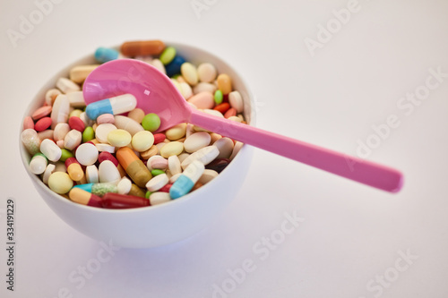 Bowl full of colorful medicine medicines
