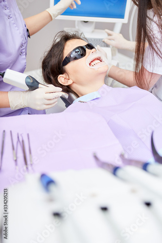 Blue LED light with teeth whitening at the dentist