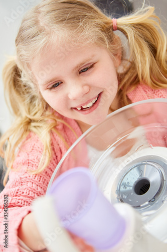 Mädchen beim Zahnarzt mit einem Becher Wasser
