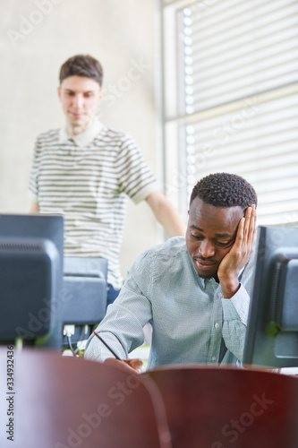 Frustrierte Studentin vor einer Mathe Aufgabe