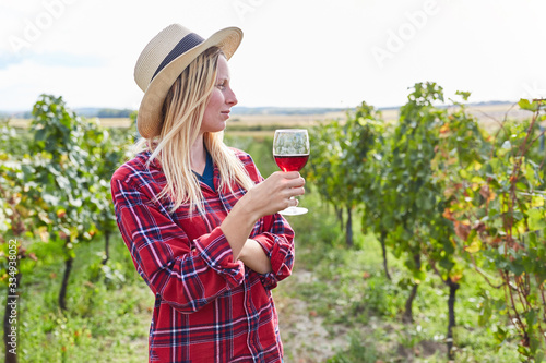Frau als Erntehelfer bei Traubenlese im Weinberg