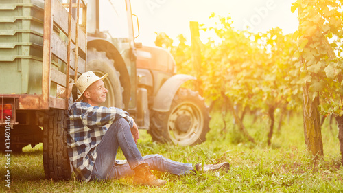 Erfolgreicher Weinbauer mit verschränkten Armen