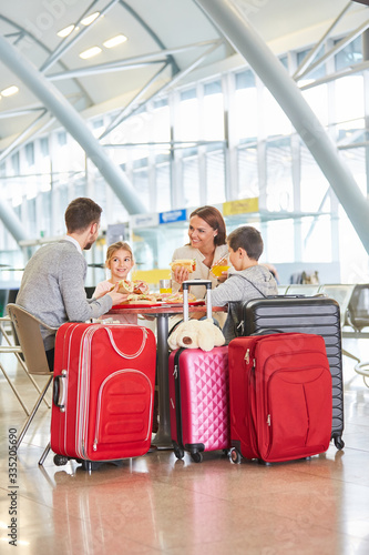 Familie mit Kindern beim Essen im Flughafen Restaurant