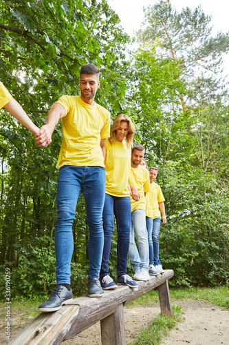 Young people as a team on the balance beam