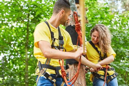 Gruppe beim gemeinsam Klettern im Kletterwald