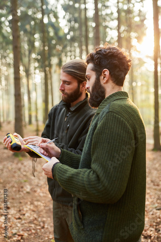 Forstwirt oder Förster kontrolliert Baum Wachstum