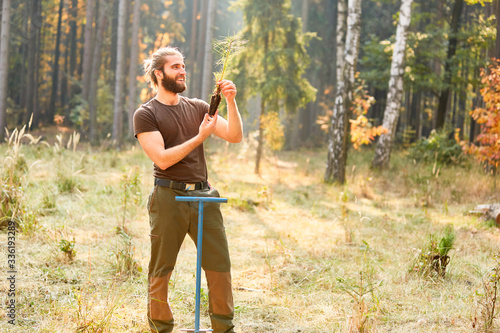 Waldarbeiter oder Praktikant im FÖJ pflanzt Bäume