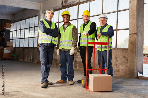 Logistik Team mit Sackkarre als Team