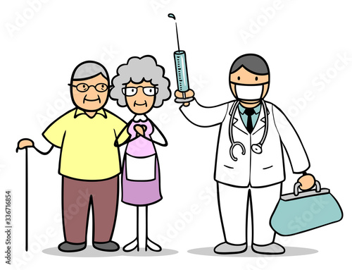Senioren mit Mundschutz bekommen Covid-19 Impfung