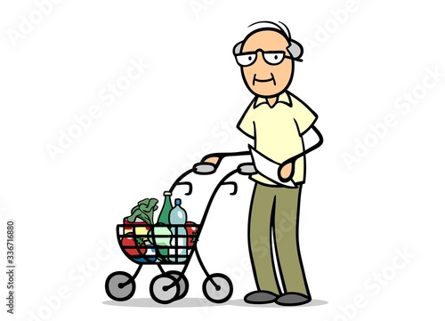 Senior mit Rollator als Einkaufskorb beim Shopping
