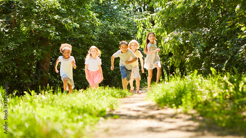 Gruppe Kinder beim Rennen in der Natur im Sommer