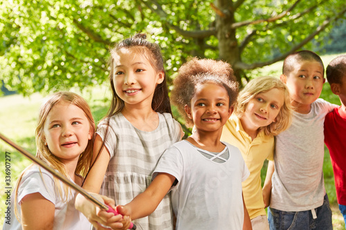 Gruppe Kinder beim Rennen in der Natur im Sommer