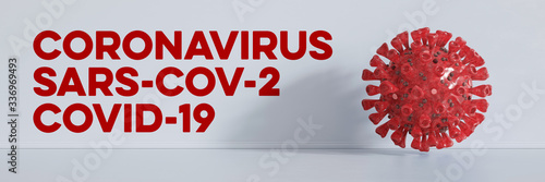 Corona virus background header with Sars-CoV-2 virus as realistic 3D rendering (3D Rendering)