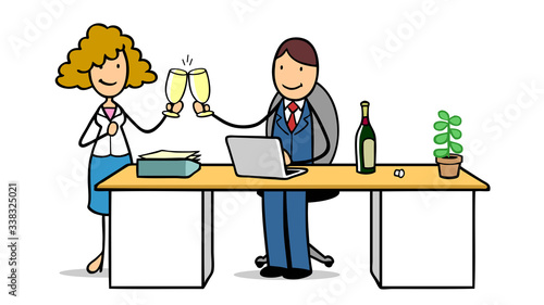 Zwei Mitarbeiter stoßen mit Sekt an als Jubiläum und Erfolg