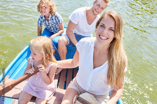Familie mit Kids macht Ausflug im Ruderboot