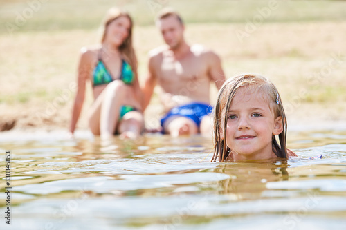 Kleines Mädchen lernt Schwimmen im Badesee