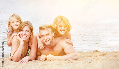 Family with two children happy on the beach