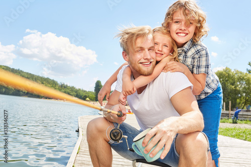Familie zeigt bunte Zeichnung mit Eigenheim