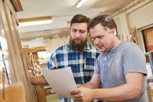Tischler Ausbilder und Lehrling in der Tischlerei