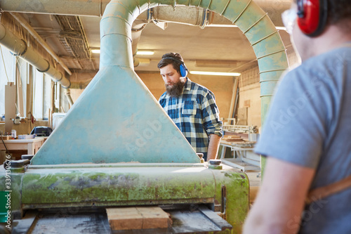 Zwei Möbelbauer mit Holz Möbel Werkstück