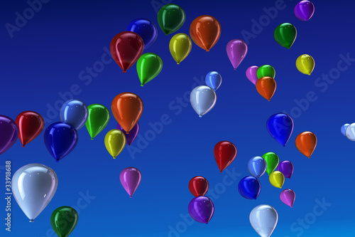 Many colorful balloons flying in a blue sky (loopable)