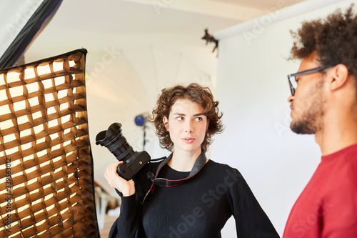Zwei junge Fotostudenten bei der Objektivreinigung