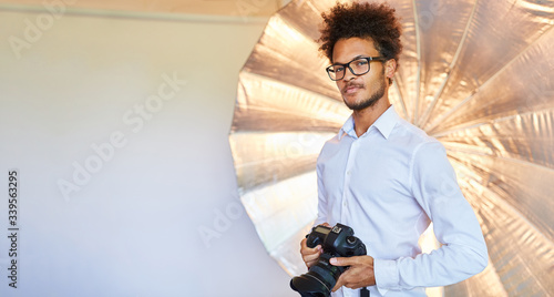 Kreativer junger Fotograf hat Idee beim Fotoshooting