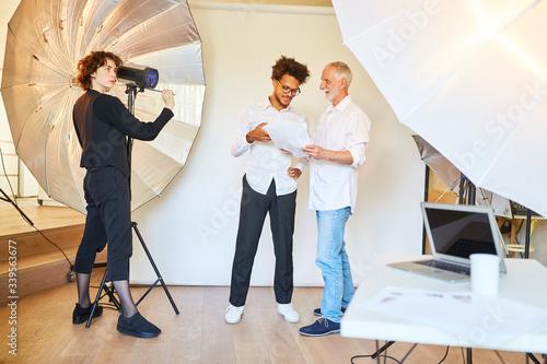 Food-Stylistin bereitet Fotoshooting mit Torte vor