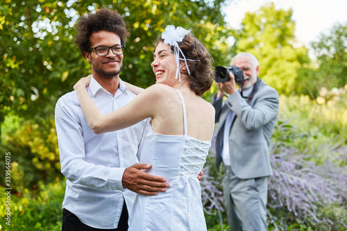 Hochzeitsfotograf fotografiert glückliches Brautpaar