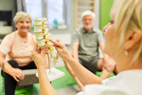 Physiotherapist with a spine model