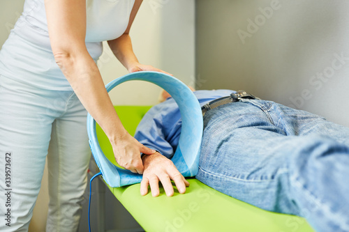 Heilpraktiker macht Magnetfeldtherapie an Hand