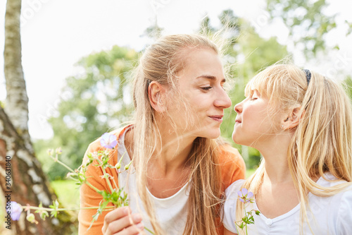 Mutter und Tochter küssen sich liebevoll