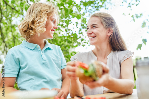 Familie zeigt bunte Zeichnung mit Eigenheim
