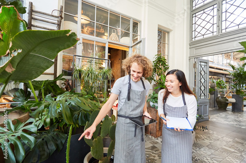 Floristen Team kontrolliert Qualität von Grünpflanzen