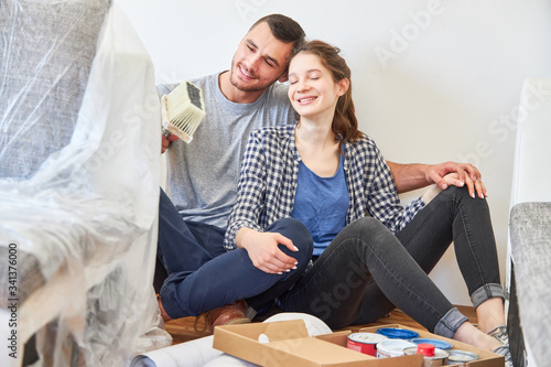 Junge Frau trägt mit ihrem Freund eine Tischplatte