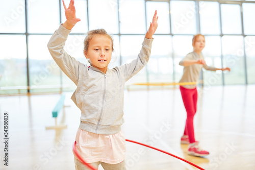 Mädchen in Schule steht vor Tafel mit Muskeln