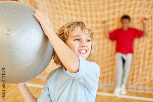 Sportlicher Junge mit einem Gymnastikball
