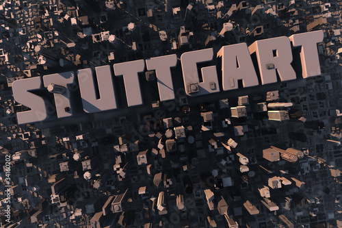 Luftansicht einer Stadt in 3D mit Schriftzug Stuttgart