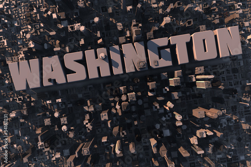 Luftansicht einer Stadt in 3D mit Schriftzug Washington