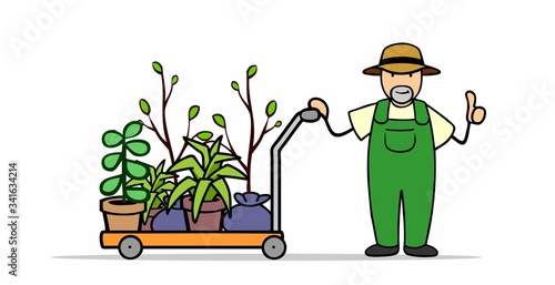 Gärtner kauft Pflanzen im Baumarkt oder Gartencenter