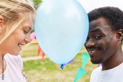 Mann und Frau beim Luftballontanz im Sommer