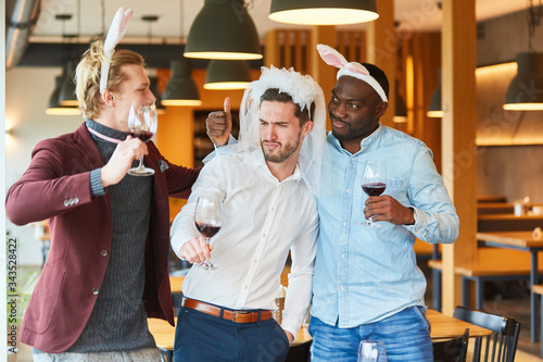 Freunde feiern Weihnachten zusammen mit Rotwein zu Hause