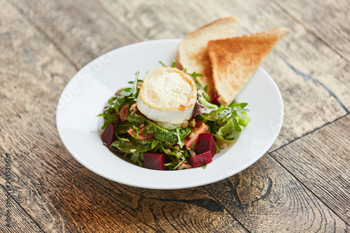 Fresh beetroot salad with Camembert and toast