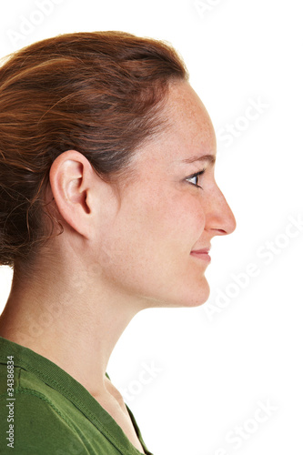Gesicht einer blonden Frau seitlich im Profil