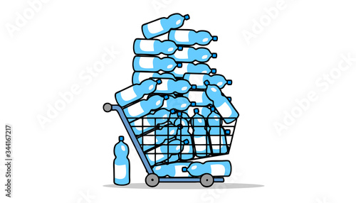 Viele Flaschen Wasser im Einkaufswagen als Hamsterkauf Konzept