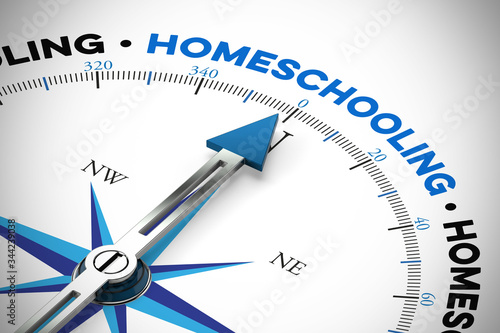 Homeschooling Konzept mit Kompass bei Coronavirus Epidemie