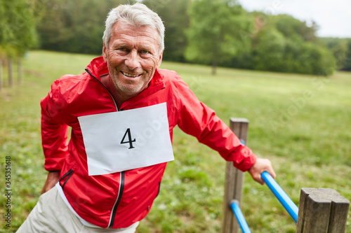 Aktiver Senior Mann auf dem Trimm dich Pfad