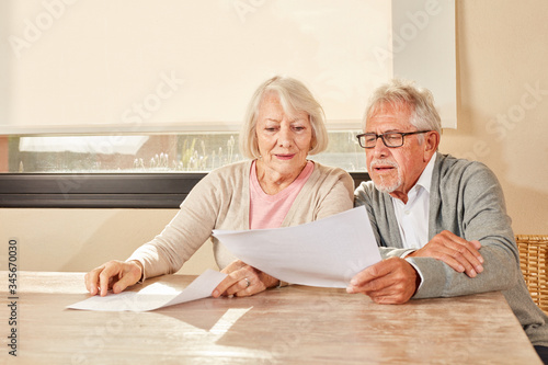 Senioren Paar liest zusammen einen Vorsorge Plan