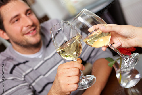Anstoßen mit Wein im Restaurant